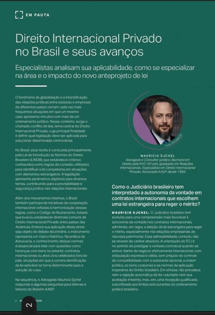 His practice focuses on high-stakes international divorce, complex asset division, child custody, and relocation. He is widely recognized for his expertise in 1980 Hague Convention child abduction proceedings, having represented clients in some of the most significant and sensitive cross-border disputes litigated within the Brazilian jurisdiction. His role as a legal expert extends to the public sphere, where he frequently provides legal analysis for major television networks and international publications on the development of private international law.